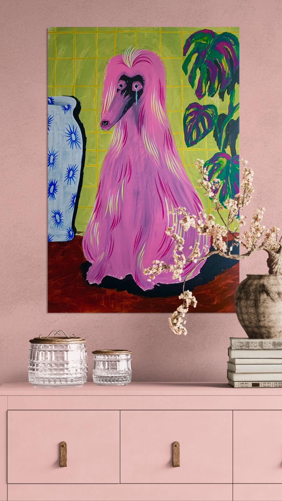 Artworks are packed individually and ship via SF (domestic) or UPS (international). Shipping rates are calculated based on the shipping address and artwork dimensions, weight, and value.