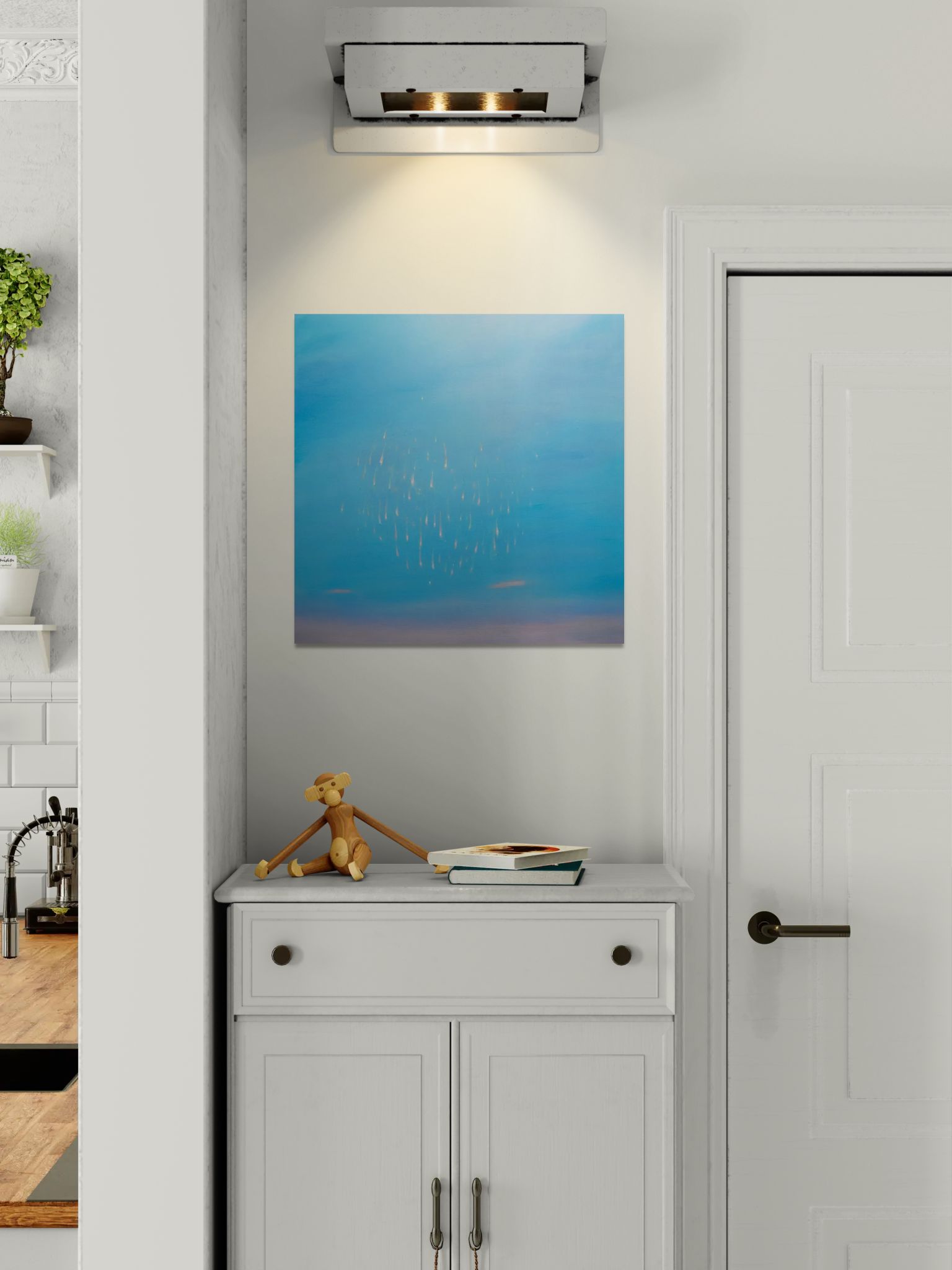 Artworks are packed individually and ship via SF (domestic) or UPS (international). Shipping rates are calculated based on the shipping address and artwork dimensions, weight, and value.
